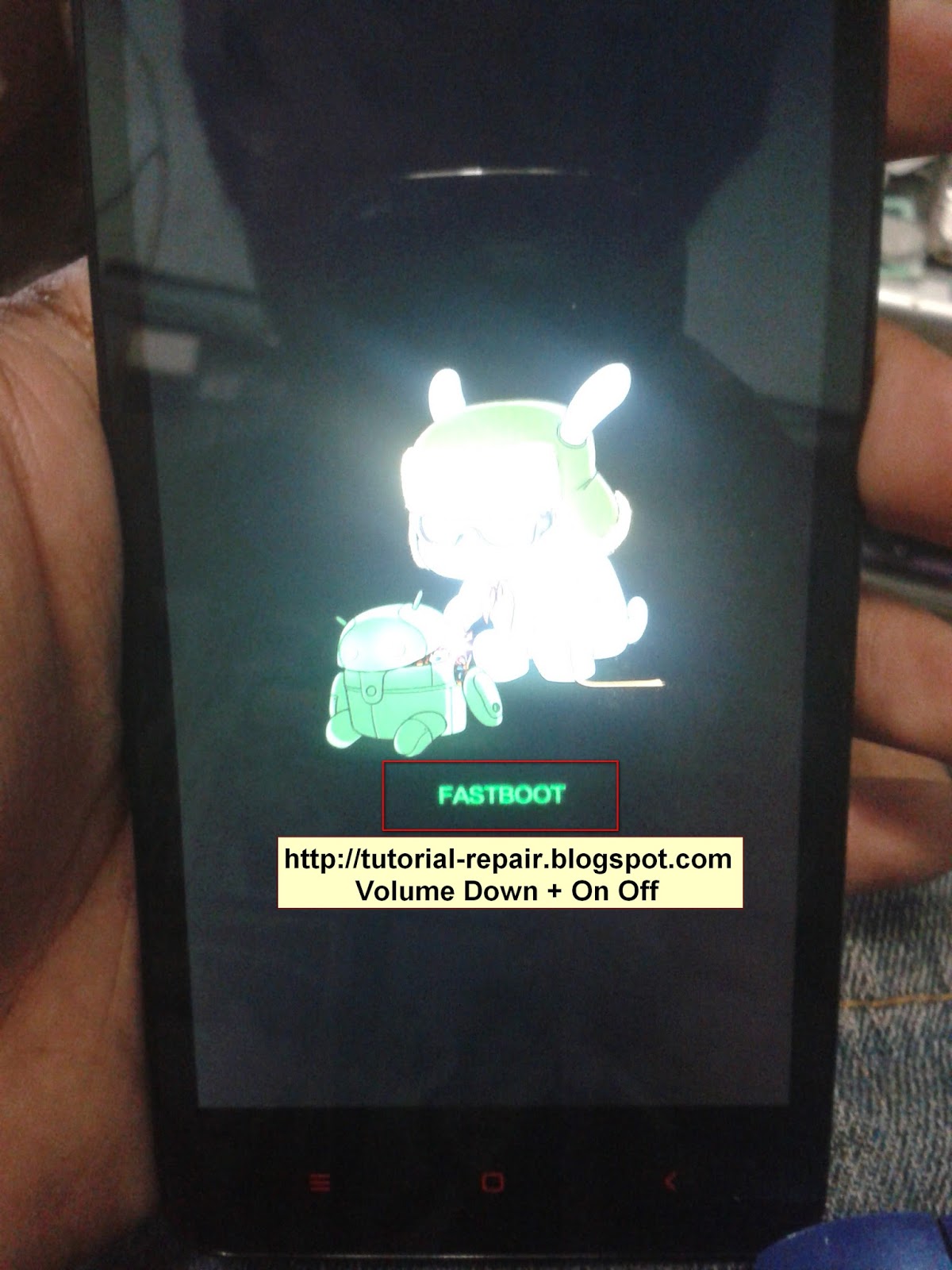 4.pastikan handphone dalam posisi fastboot mode dengan cara tekan volume down + on off atau volume down + colok usb ke komputer.